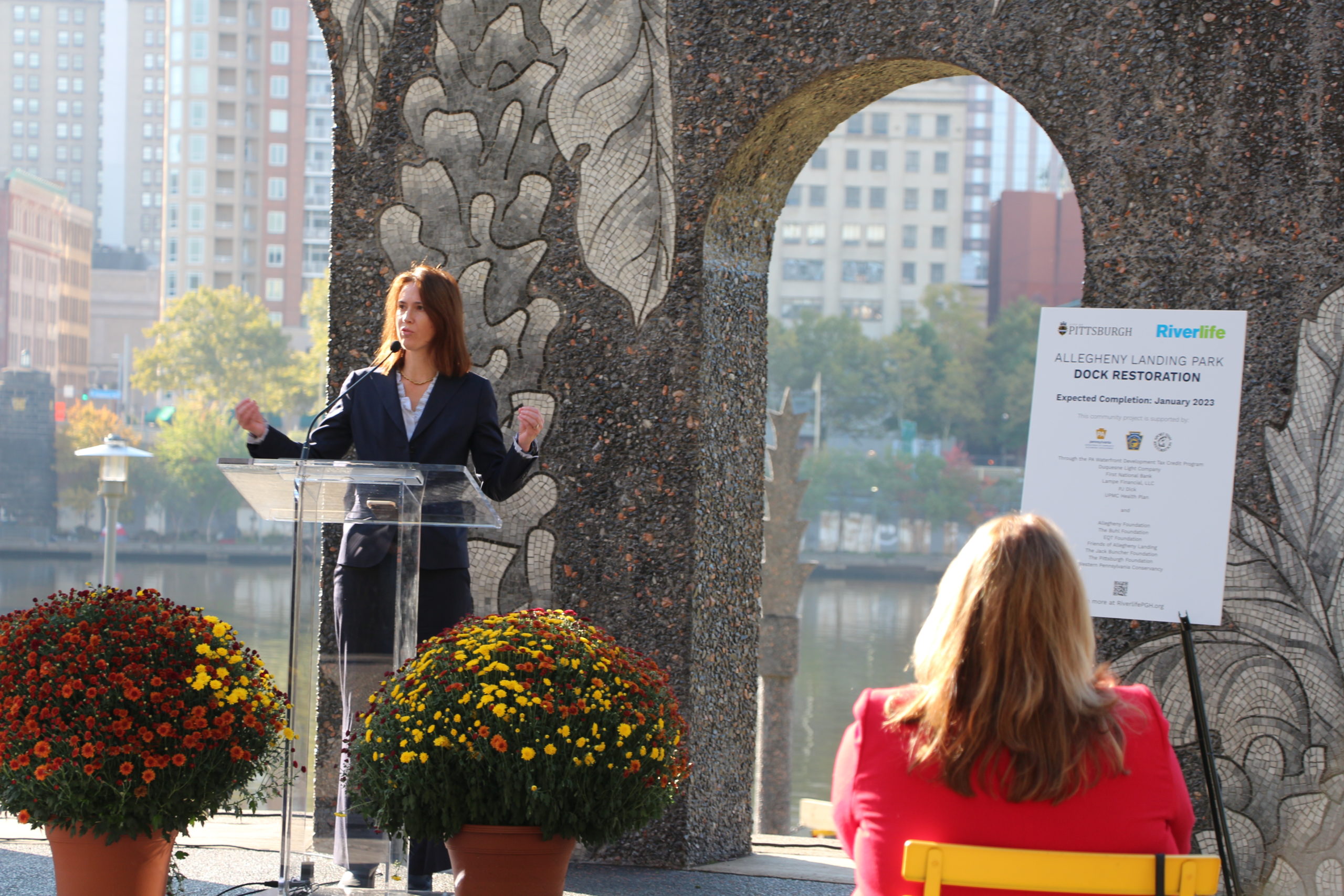 “Allegheny Landing is one of Pittsburgh’s great city parks,” Councilman Bobby Wilson said during his remarks. “We are excited to see its revitalization taking shape, starting with the restoration of the public dock.”