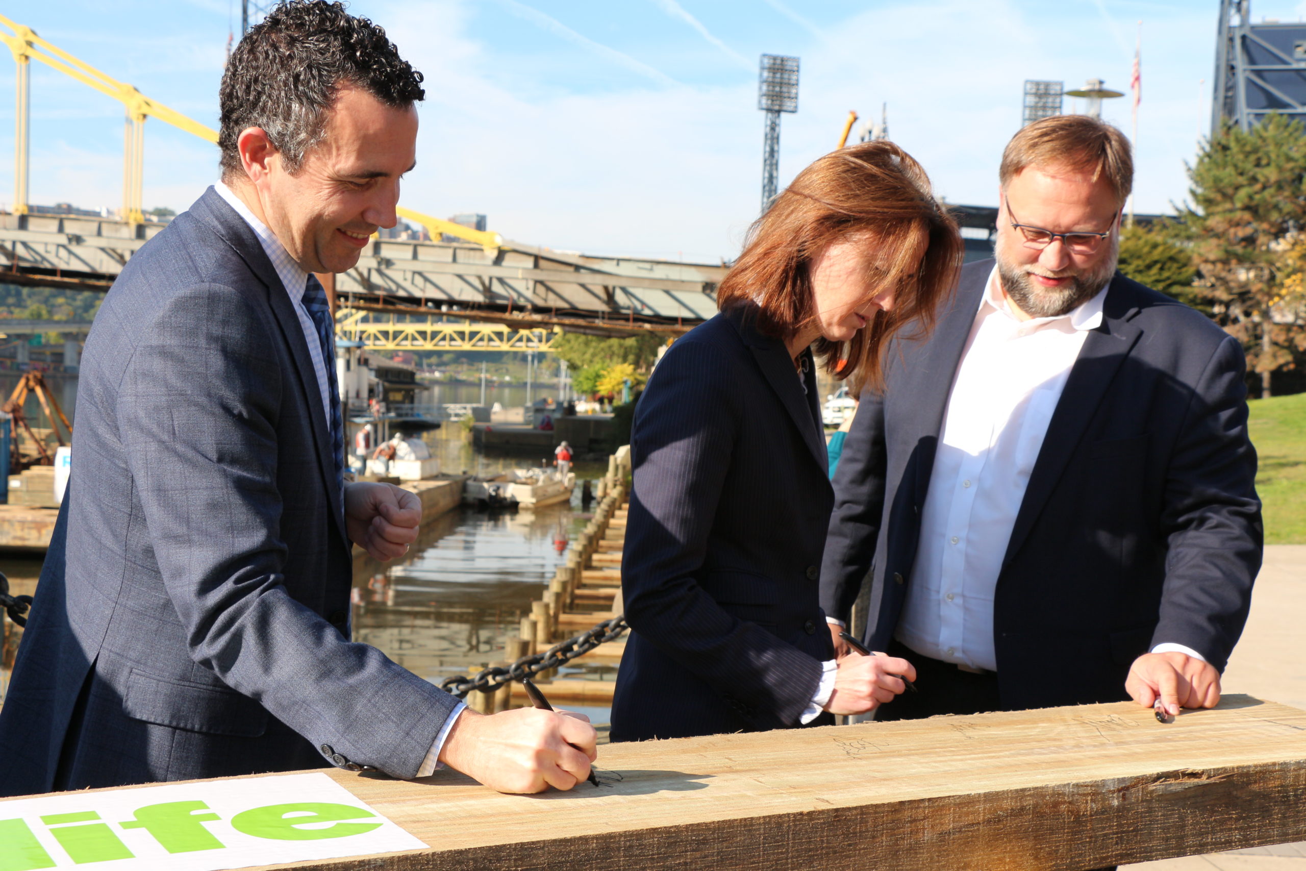Brent Semachko, Director of Corporate Responsibility for First National Bank, echoed Galluzzo’s comments. “First National Bank is thrilled to invest in the restoration of Allegheny Landing Park and dock. This is a wonderful way to keep dollars local, where they truly benefit the Pittsburgh region,” he said.